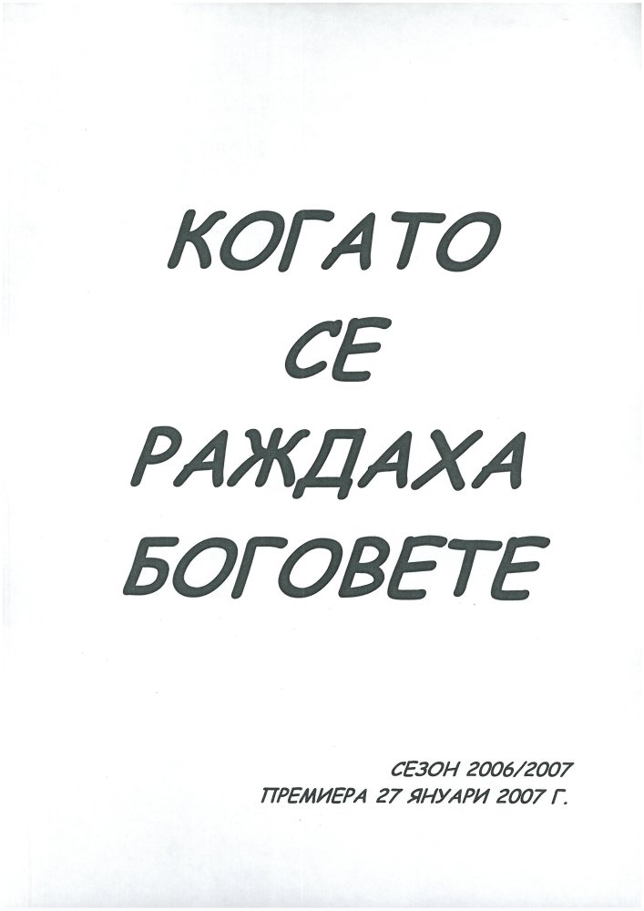 Мултимедиен танцов спектакъл, копродукция между НАТФИЗ "Кр. Сарафов" и Международен фестивал на изкуствата" "Перперикон". Участват студенти с увреден слух от специалност "Пантомима" с художествен ръководител доц. д-р Александър Илиев.